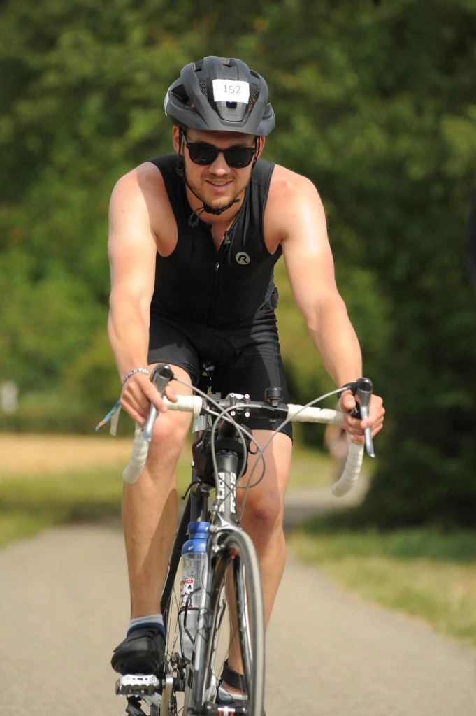 The swimming part was – unsurprisingly – quite tough for me. I only ever swam in the clean, confined swimming pool, so swimming in the (quite dirty) Enz river, surrounded by hundreds of other athletes and with poor visibility, was definitely a challenge. Luckily, 750 m are not that much, so it went by fairly quickly.