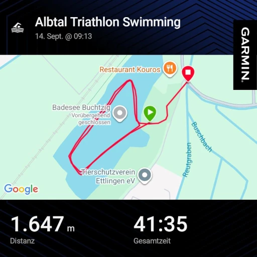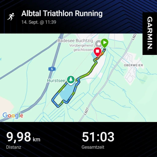 The morning of September 14th 2025 – the day of this year’s Albtal Triathlon – was a cold one. I was freezing and shivering in my trisuit while waiting for the starting signal. The Buchtzig lake’s water wasn’t particularly warm either (20° C, iirc). However, I immediately didn’t feel cold anymore when the adrenaline rushed through my body the moment I got into the water.